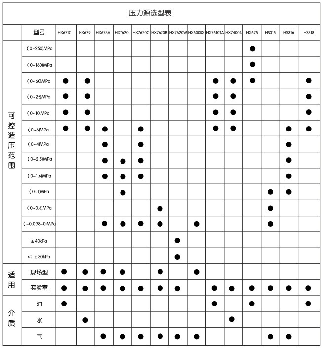 壓力源選型表