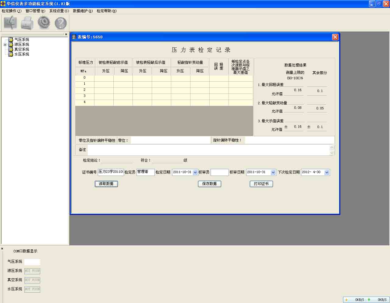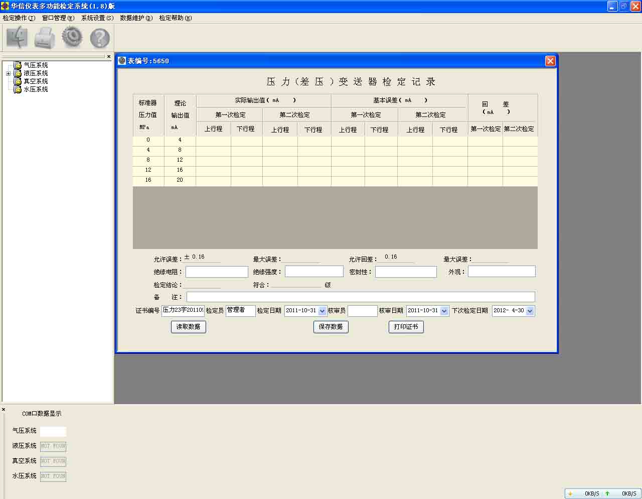 軟件系統(tǒng):V2008壓力檢定系統(tǒng)